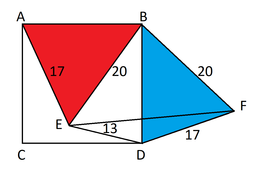 BD — это сторона рассматриваемого квадрата, поэтому BD² — это площадь этого квадрата, которая, как мы показали, равна 369.