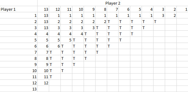 В следующей таблице показано, как это может произойти. В основной части таблицы указаны победители во всех 78 играх.