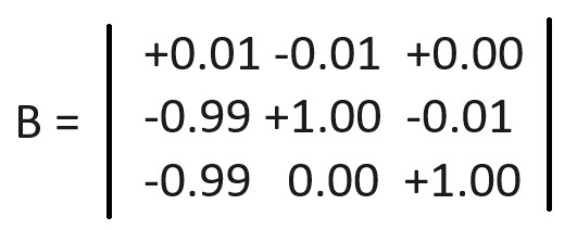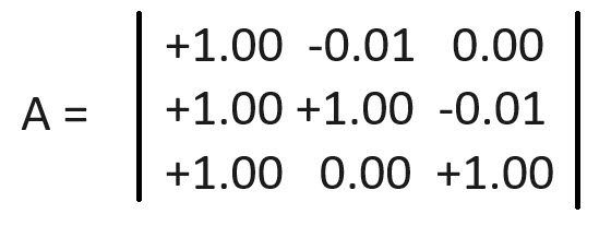Теперь у нас есть три уравнения и три неизвестных, поэтому мы можем их решить. Я предпочитаю матричную алгебру.