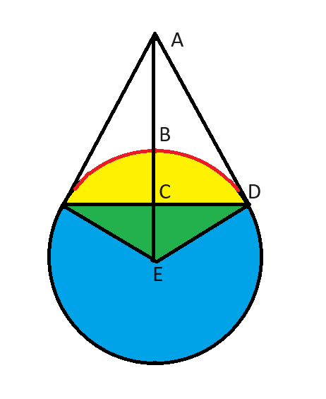 - Угол ADE равен 90 градусам, потому что AD является касательной к окружности.