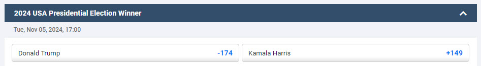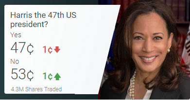Похоже, я могу использовать арбитраж для определения победителя президентских выборов 2024 года, делая ставки на Харрис на Pinnacle и на Трампа на PredictIt. Я прав? Если я хочу получить одинаковую прибыль независимо от того, кто победит, как мне следует распределить свои ставки?