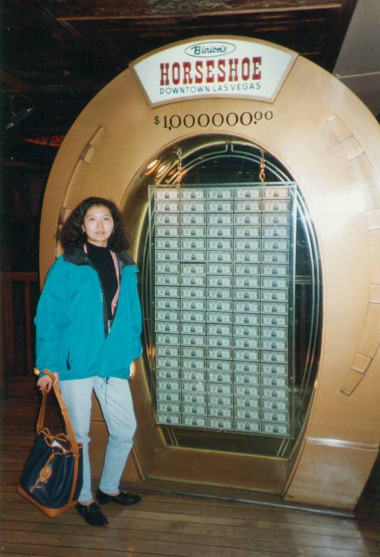 У меня нет причин сомневаться, что под этим футляром находится миллион долларов. В их более старой и гораздо лучшей витрине явно был миллион в виде 100 купюр по 10 000 долларов. Для тех, кто с ними не знаком, купюры в 10 000 долларов встречаются крайне редко и продаются на аукционах примерно в десять раз дороже. Еще одна причина, по которой я не сомневаюсь, что у них в помещении есть миллион долларов, заключается в том, что каждое казино в Неваде должно иметь достаточно наличных денег для ведения бизнеса, и я полагаю, что Совет по контролю за азартными играми Невады разрешает Binion's пересчитывать деньги в этой витрине в качестве крайней меры. По иронии судьбы, именно нехватка наличных денег стала причиной закрытия Binion's в 2004 году ( источник ).