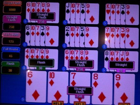 Позвольте мне объяснить, что такое автомат 2-го класса, для пользы других. Это игровой автомат, в котором исход определяется вытягиванием шариков бинго. Если все сделать правильно (а это часто бывает не так), игра будет проходить точно так же, как на обычном игровом автомате. Я был в двух казино в Талсе, и больше всего на видеопокер я нашел не автоматы 2-го класса, а «игровые автоматы с отрывными карточками». В таких автоматах игрок делает ставку, нажимает кнопку, на экране появляются 5 карт, и выпадает ваучер, если вы что-то выиграли. Вы можете отнести его кассиру. Хотя для пятикарточной комбинации стад-покера есть таблица выплат, я не думаю, что карты раздаются случайным образом. Скорее, это просто визуальное средство, показывающее, сколько вы выиграли.
