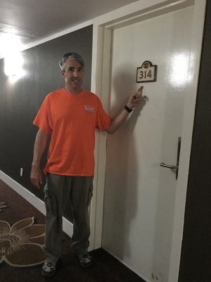 Это был мой номер в отеле Brickell Bay. Какова вероятность? Длинные брюки я надела только потому, что ехала в аэропорт, откуда у меня был пересадочный рейс в Бостоне, где было намного ниже нуля.