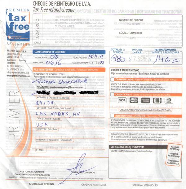 В Аргентине налог с продаж составляет 21% (ужас!), и он скрыт в стоимости товара. Другими словами, это налог на добавленную стоимость (НДС). Чтобы облегчить жизнь иностранцам, некоторые магазины участвуют в программе «покупки без налога». Ваши шансы выше в магазинах высокого класса, где должна быть вывеска «покупки без налога». Почему большинство магазинов предпочитают не участвовать в этой программе, я не знаю.