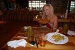 Ресторан Hooters: Это та же самая еда, типичная для крылышек Баффало и пива, которую можно найти в каждом втором ресторане Hooters в мире. Должен признать, мне это даже нравится. Моя подруга говорит, что во время беременности ей очень хотелось крылышек Hooters и текилы. Она решила насладиться крылышками, но отказаться от текилы. Лиза, модель на фотографии, обожает их жареные во фритюре маринованные огурцы.