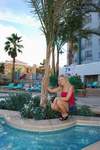 В отеле Hooters есть довольно внушительный бассейн для отеля такого размера. На самом деле здесь три бассейна и два спа-салона. Вокруг бассейнов около 50 шезлонгов, примерно дюжина пальм, небольшая песчаная зона и водопад. Водопад не работал, когда я фотографировался с Лизой, но он был в рабочем состоянии, когда я вернулся неделю спустя. Рядом находится бар «Nipper’s», где можно выпить, но он был закрыт, когда я делал фотографии.