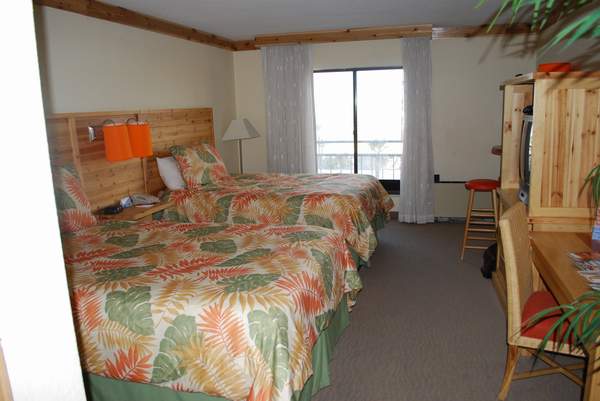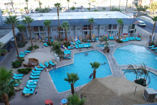 Когда я там останавливался, мой номер с видом на океан в высотном здании стоил 41,65 доллара, включая «курортный сбор» в размере 5,60 доллара и не включая 12% гостиничный налог штата Невада. Скажу сразу очевидное: вида на океан не было, только несколько досок для серфинга возле лифтов. Единственное, что входило в так называемый курортный сбор, чего обычно не ожидаешь, — это бесплатные местные и бесплатные телефонные звонки. Номера в малоэтажном здании у бассейна были немного дешевле.