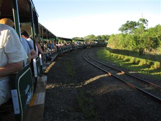 Как видно на карте, здесь проходит железнодорожный маршрут с тремя станциями. Поезда отправляются с каждой станции каждые 30 минут. Если вы не в состоянии пройти пешком десять минут, нет смысла ехать на поезде между первой и второй остановками. «Зеленая тропа» приведет вас ко второй железнодорожной остановке на «центральном вокзале», откуда можно добраться до большинства смотровых площадок. На территории парка проложено пять троп: