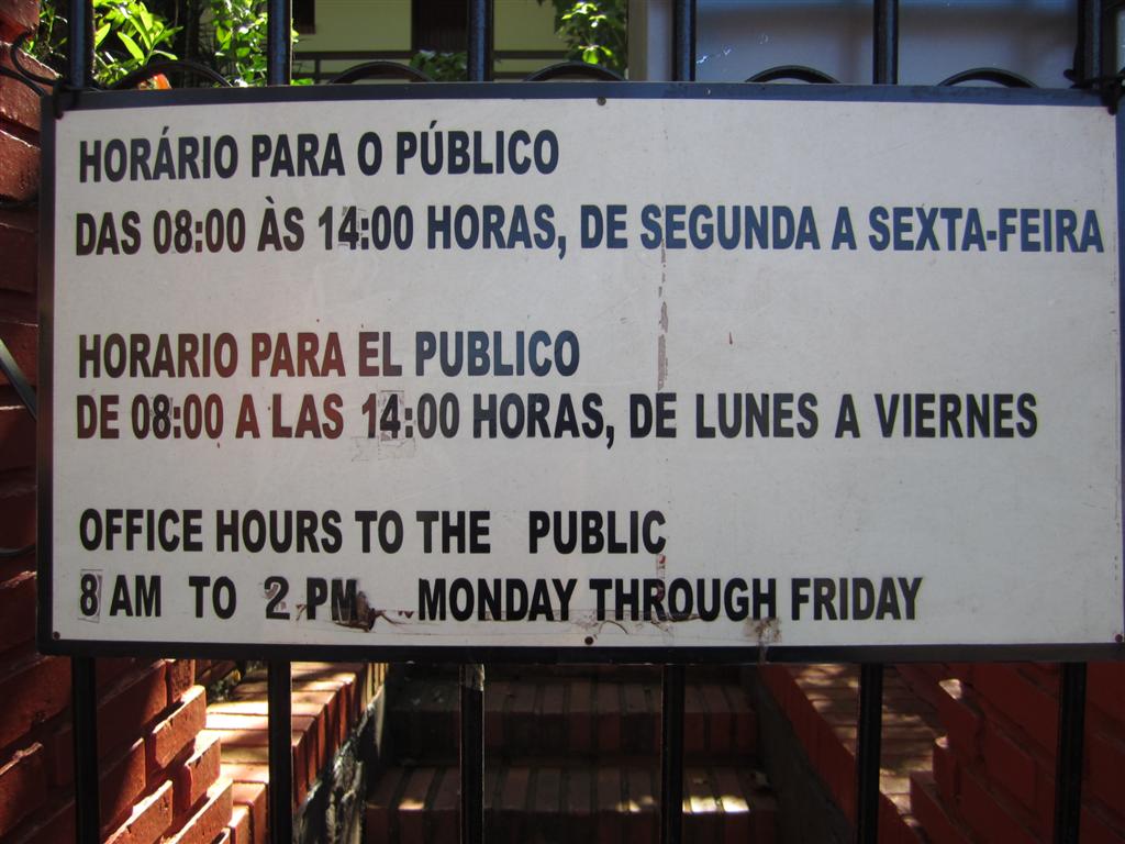 Единственным вариантом было обратиться в консульство Бразилии в городе и оплатить действующую визу. Найти его было довольно сложно из-за немногочисленных уличных указателей в Пуэрто-Игуасу, но в конце концов я его обнаружил. Однако это была суббота, и консульство было закрыто. Даже если бы оно было открыто, я не уверен, выдают ли они визы в короткие сроки.Вернувшись, я рассказала эту историю подруге, которая имеет двойное гражданство США и Аргентины. Она сказала, что в 2006 году, находясь в Игуасу, пыталась пересечь границу, имея при себе только американский паспорт. Она пыталась объяснить, как потеряла свой аргентинский паспорт, на безупречном испанском языке с аргентинским акцентом, но власти не поверили ей и отправили обратно.