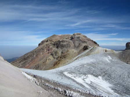 После возвращения я встретил Курга Ведбурга, основателя Sierra Mountaineering International , и спросил его о том, где находится настоящая вершина Истаксиуатля. Как я и опасался, он сказал, что это дальняя точка на другом конце ледового поля, до которой я не дошел. Однако он добавил, что разница высот между этой точкой и местом, где я повернул назад, была «совсем незначительной».