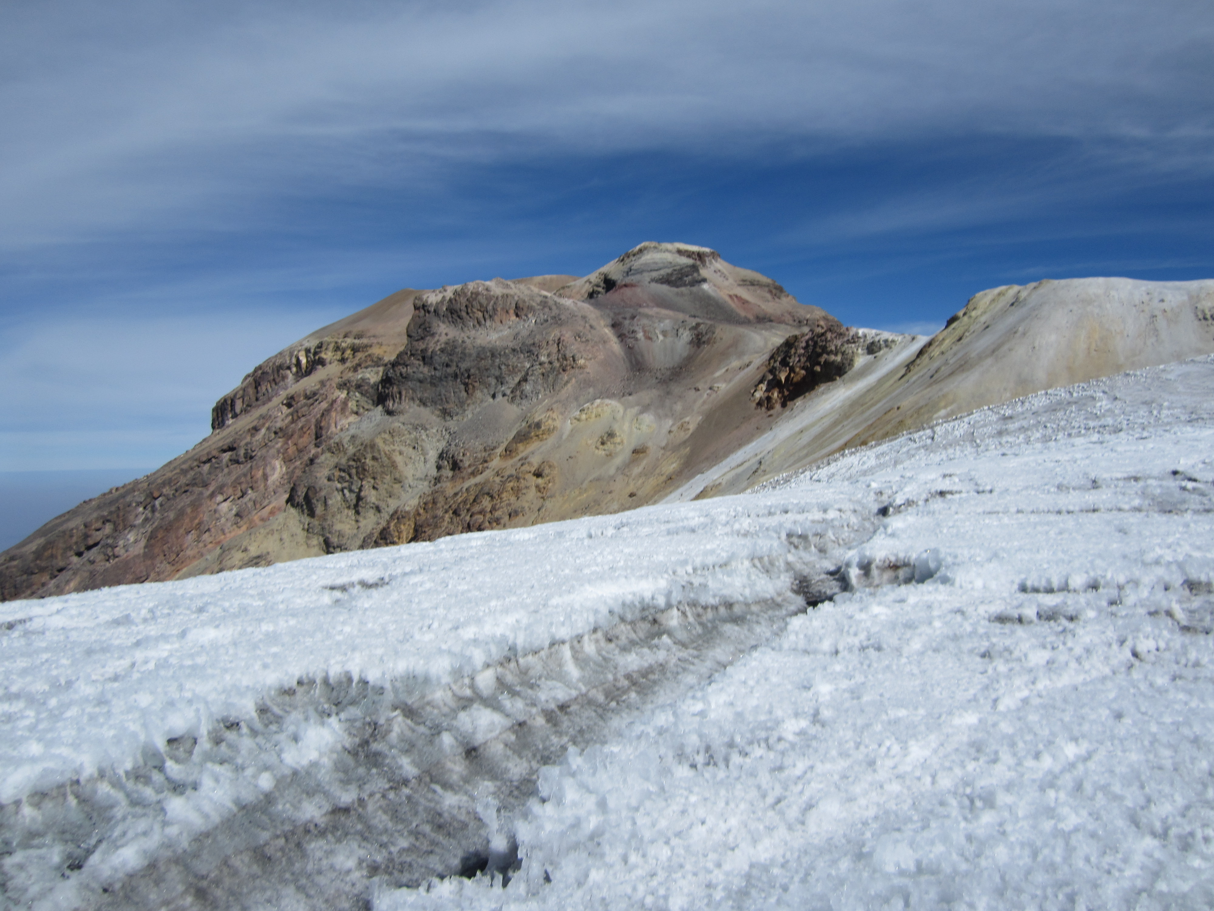 После возвращения я встретил Курга Ведбурга, основателя Sierra Mountaineering International , и спросил его о том, где находится настоящая вершина Истаксиуатля. Как я и опасался, он сказал, что это дальняя точка на другом конце ледового поля, до которой я не дошел. Однако он добавил, что разница высот между этой точкой и местом, где я повернул назад, была «совсем незначительной».