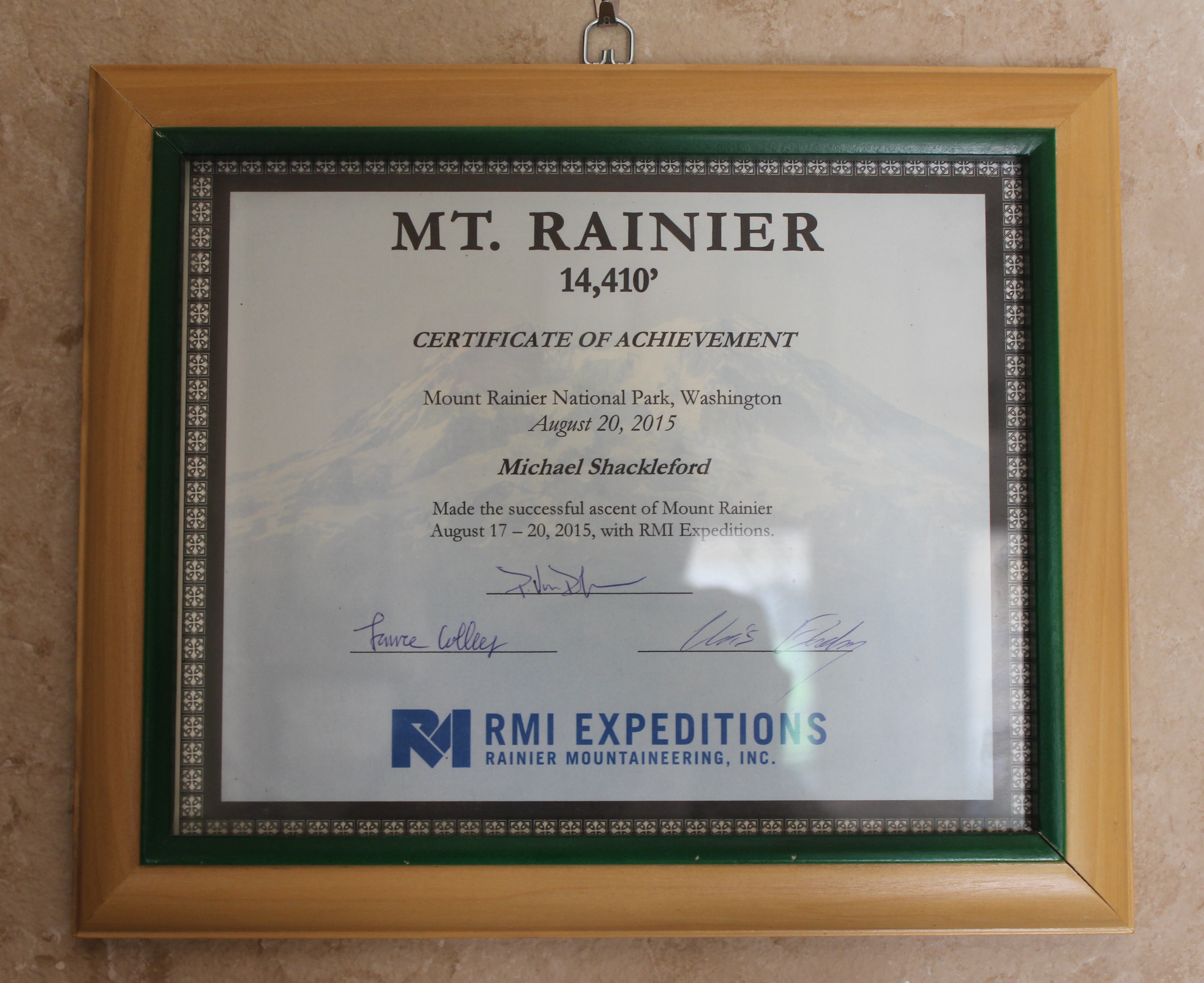 17 августа 2015 года я встретился с главным гидом Питом и семью другими гостями в Эшфорде, штат Вашингтон, где находится штаб-квартира RMI. У нас состоялась вводная презентация в PowerPoint, в ходе которой мы рассказали о том, чего ожидать. Пит показался приятным и добродушным парнем, а остальные гости выглядели в хорошей физической форме.