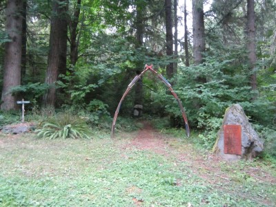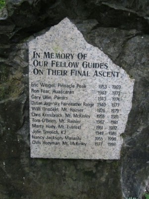 Это мемориал погибшим проводникам, расположенный в лесу за задней парковкой общежития Уиттакера, где я останавливался.
