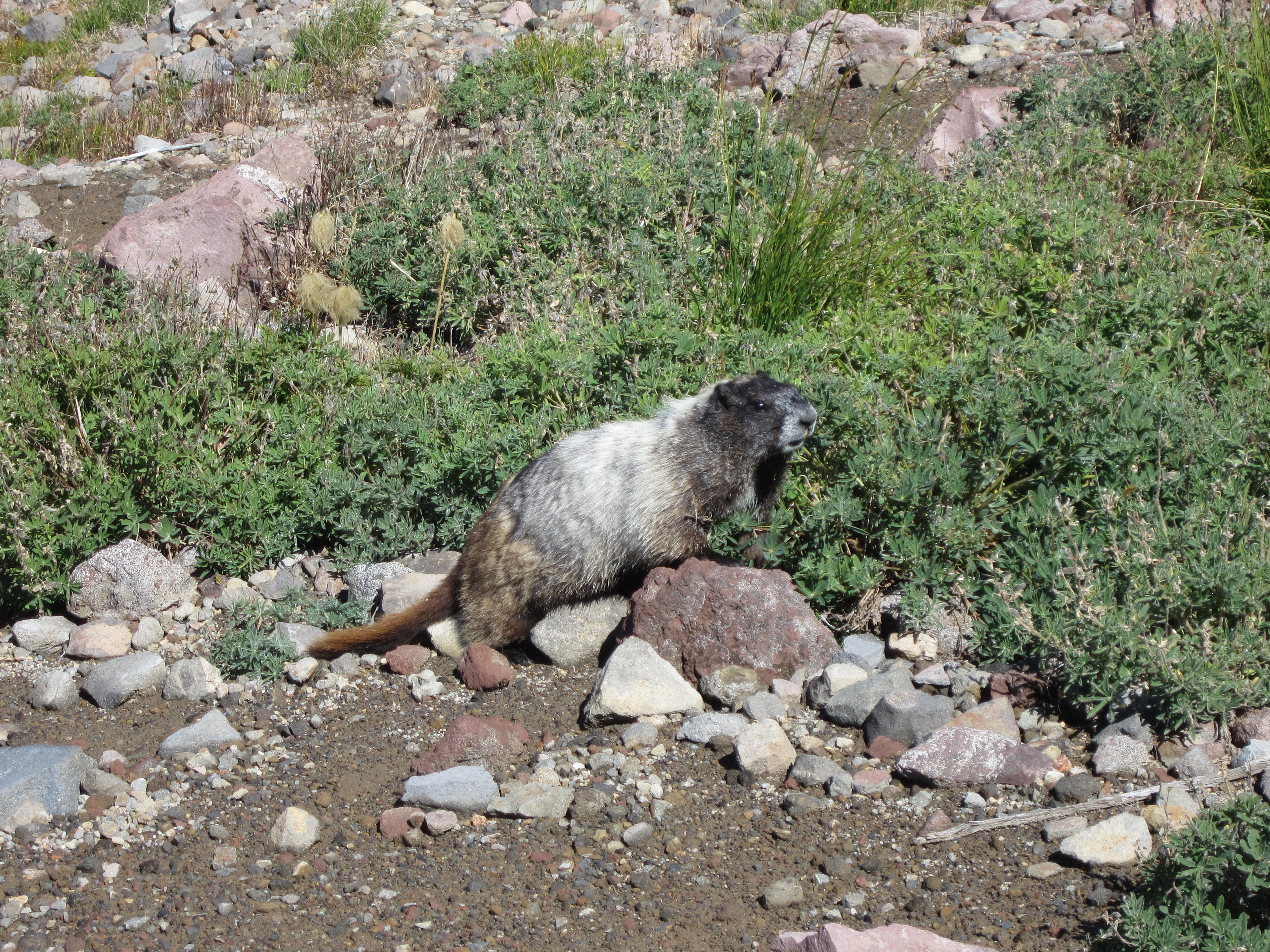 Примерно первая половина подъема проходила по хорошо ухоженным тропам, которыми пользовались многочисленные туристы, совершающие однодневные походы, и вокруг туристического центра. Мы старались держаться друг за другом, насколько это было возможно, но нас часто нарушали маленькие дети, бегающие по тропе. Было приятно наконец добраться до Пеббл-Крик, это крайняя точка системы ухоженных троп, так что мы смогли уйти от толпы и начать подниматься по снежным полям.