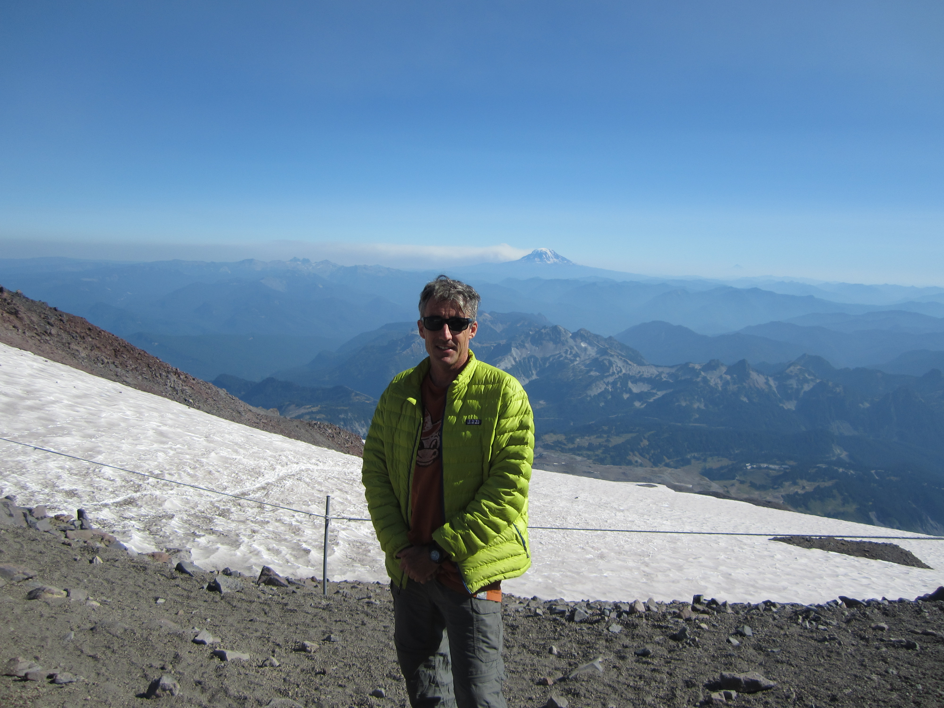 Ранее я уже покорял горы Худ и Шаста, поэтому думал, что кое-что знаю об альпинизме и о том, что нужно брать с собой. Однако у Пита было другое мнение о моем снаряжении, и он сказал, что я не готов к возможности провести несколько часов на морозе. Хотя погода была очень жаркой, никогда не знаешь, что может случиться на большой высоте.