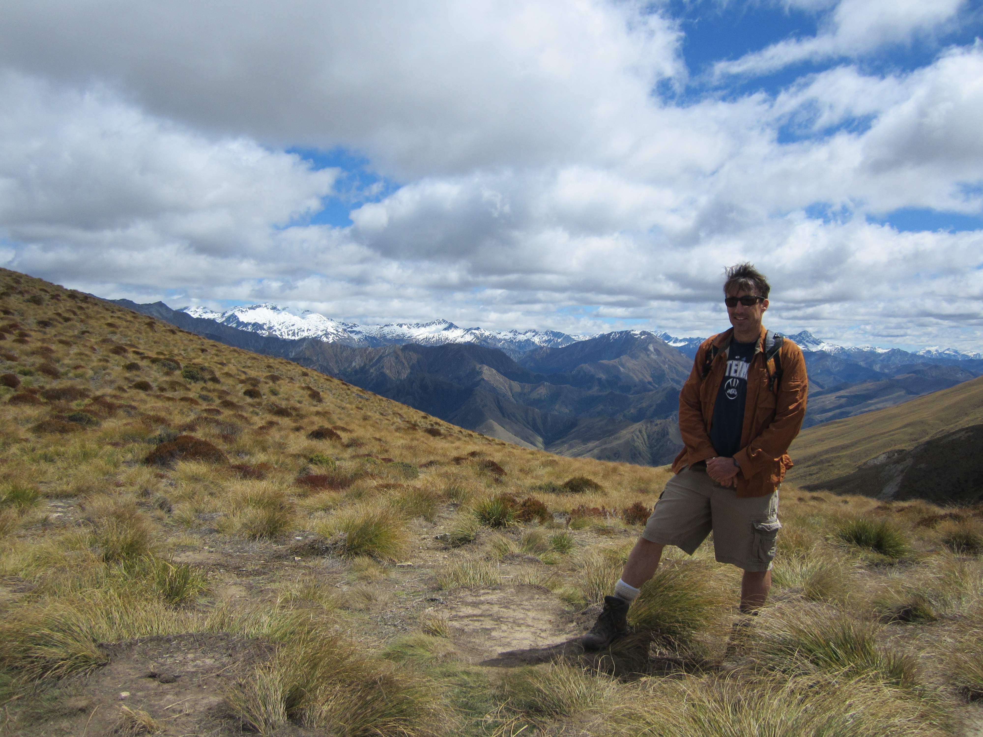 Глядя вниз по долине, через которую мы только что прошли. Тот парень в белой шляпе — Адам. Он решил все математические задачи, которые я ему подкинул.