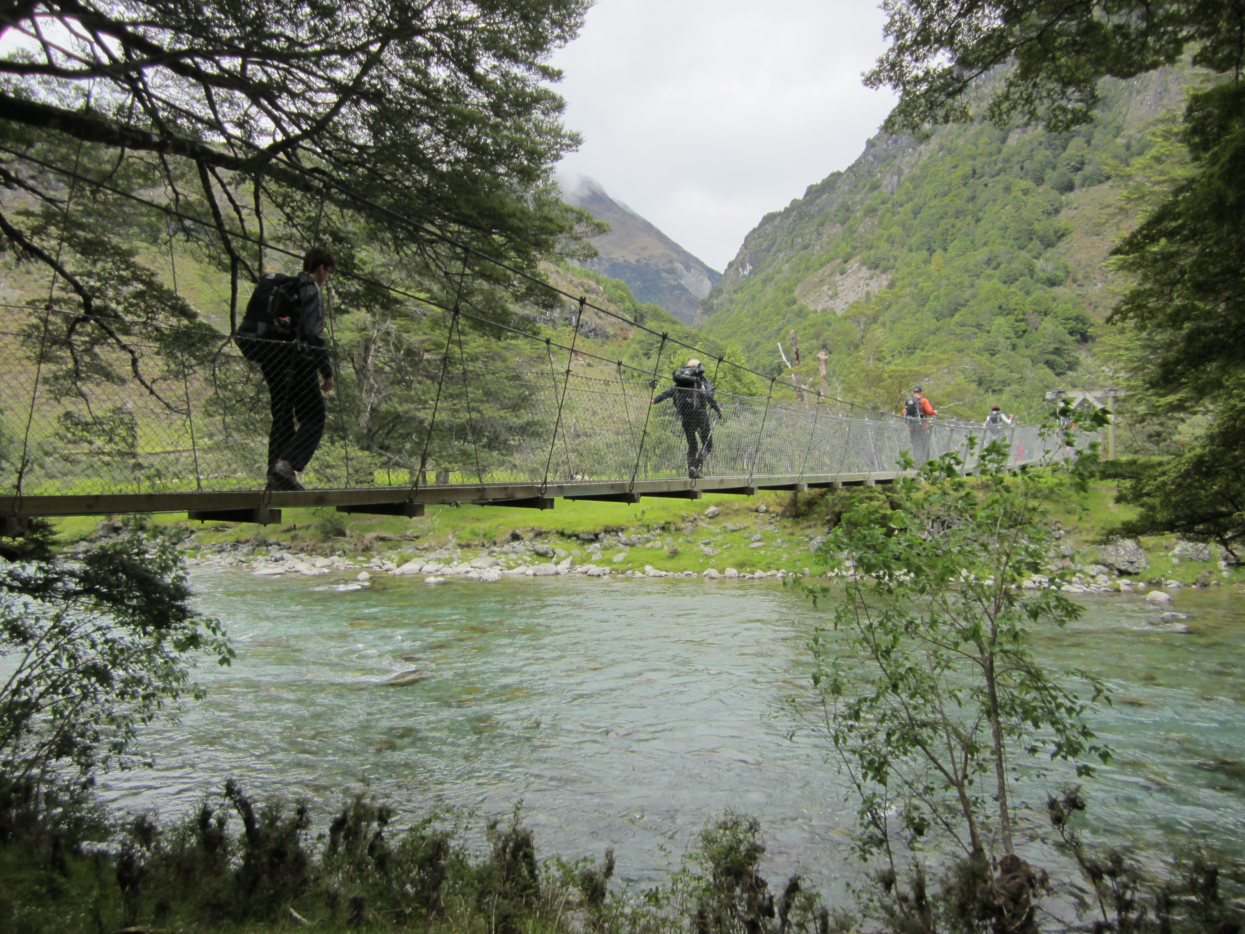 После нескольких дней прогулок по Квинстауну я отправился в шестидневный поход по маршруту Гранд-Траверс с компанией Ultimate Hikes. Мы пересекли бесчисленное количество подвесных мостов, подобных этому.
