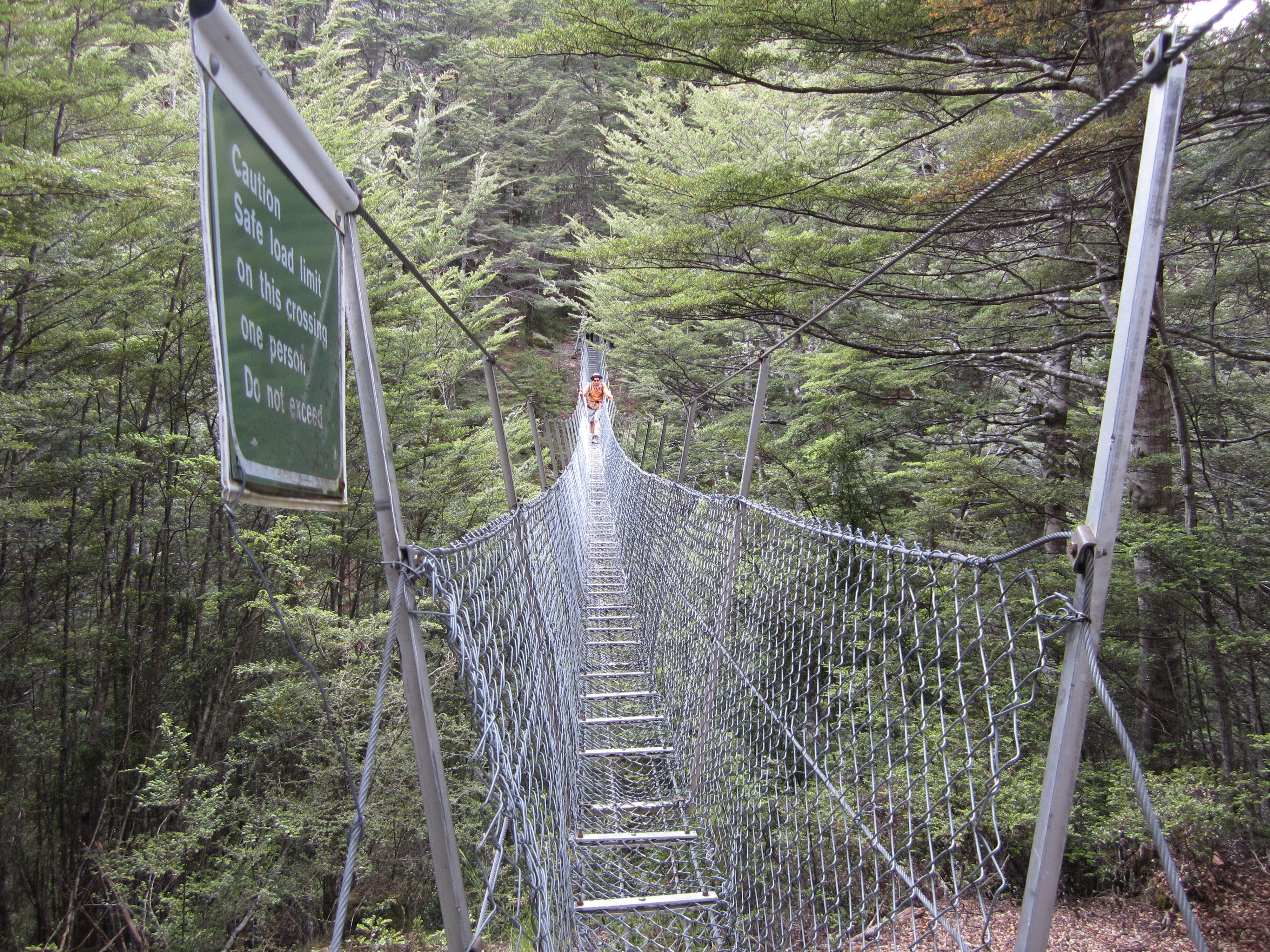 Вот я перехожу ещё один подвесной мост. Обратите внимание на знак, который гласит, что переходить нужно по одному.