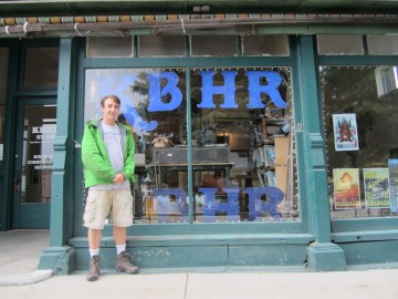 Вот кабинет доктора Флейшмана, который превратили в сувенирный магазин, в основном ориентированный на туристов, интересующихся НХЛ, таких как я. Джентльмен, с которым я позирую, работал в магазине, когда я там был, и любезно поговорил со мной обо всем, что связано с НХЛ. Он дал мне карту, на которой отмечены ключевые здания НХЛ в городе. Он снимался в массовке во многих эпизодах. Например, он был одним из очевидцев, наблюдавших за тем, как загорелась машина доктора Флейшмана.