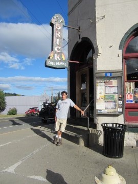 Наконец, вот и легендарный «Брик». С тех пор заведение разделено на барную и ресторанную зоны. Я заказал гамбургер и пиво за барной стойкой. Нет, в меню нет бургеров из лося. Сам бар — старейшая действующая таверна в штате Вашингтон. Бармен любезно согласился сделать этот снимок.