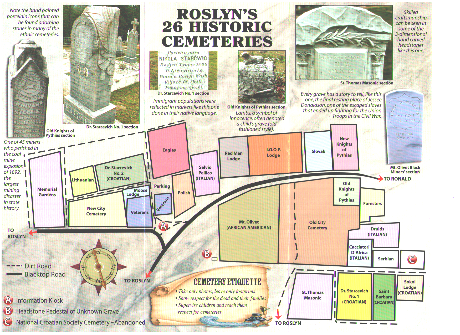 В последней серии показывают городское кладбище, которое выглядит довольно маленьким. Однако в реальности в Рослине 26 кладбищ, в основном разделенных по расовому признаку. Джентльмен, которого я встретил в магазине, сказал, что Пег Филлипс (http://en.wikipedia.org/wiki/Peg_Phillips), сыгравшая Рут Энн Миллер, похоронена на одном из них. Я пытался найти её могилу, но между 26 кладбищами было так много надгробий, что мне потребовался бы весь день, чтобы найти её методом проб и ошибок.