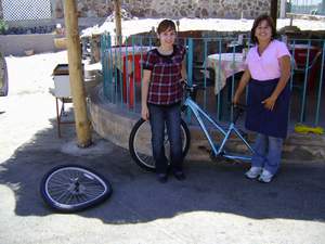 Заднее колесо велосипеда было полностью деформировано, а передние тормоза получили незначительные повреждения. Я мог бы забрать велосипед домой, но багажник теперь едва держался на машине. Не стоило рисковать тем, что велосипед соскользнет с машины на скорости 120 км/ч и улетит в поток машин, чтобы спасти сломанный велосипед. В машине не было места для велосипеда, поэтому, несмотря на возражения жены, я отдал его официантке в качестве чаевых. Заметьте, это был очень хороший женский внедорожный велосипед, почти новый. Такие велосипеды в Мексике не каждый день увидишь. Сначала официантка попыталась отказаться, но я объяснил, почему у меня действительно не было выбора, кроме как отдать его кому-нибудь. Она, казалось, была очень рада, когда согласилась принять его.