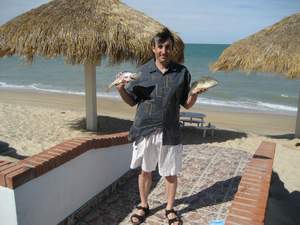 На следующее утро мы с женой и сыном приехали пораньше, попросив позвать Пио. Оказалось, Пио был настоящим боссом для других рыбаков. Пикап был занят тем, что вытаскивал лодки на воду, потому что был отлив. В Сан-Фелипе огромные приливно-отливные колебания. Когда подошла наша очередь, мы запрыгнули в кузов пикапа, который вытащил нашу лодку на воду, сели в лодку, и отправились в путь.