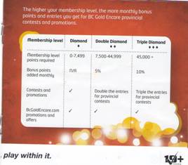 Существует три уровня карт: одинарный, двойной и тройной бриллиантовый. Для получения двойного бриллиантового уровня достаточно оборота в 7500, а для тройного — 45000. По сравнению с Лас-Вегасом, достичь более высоких уровней довольно легко. Члены с двойным бриллиантовым уровнем получают дополнительные 5% в виде «бонусных баллов», а члены с тройным бриллиантовым уровнем — 10%.