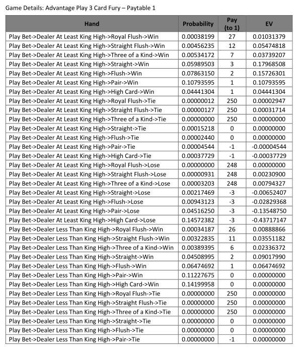 Полное название игры — Advantage Play 3 Card Fury.