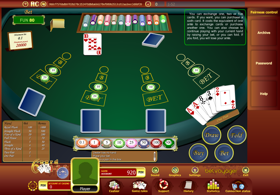 - Обмен : Игрок платит взнос, равный его ставке, за обмен одной, двух или всех пяти карт.