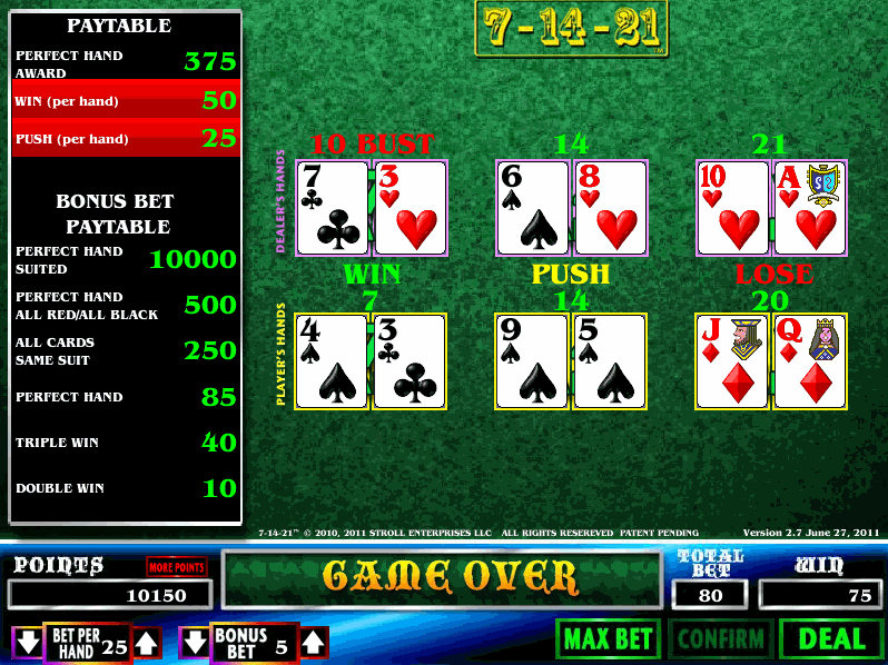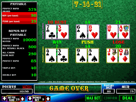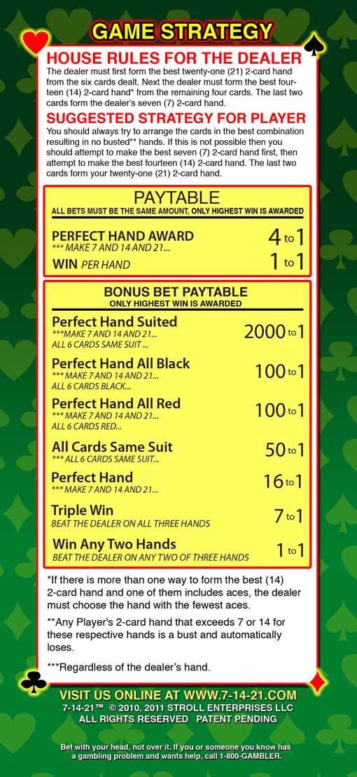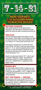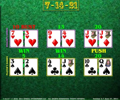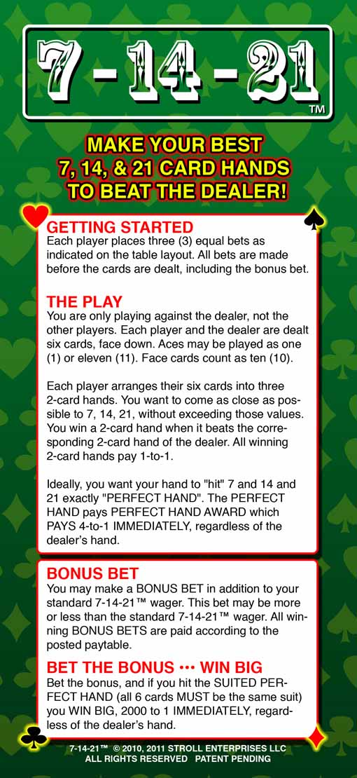 7-14-21 — это настольная игра, которую я впервые увидел в отеле Palms летом 2011 года. Ранее в нее играли в отеле Grand Biloxi в конце 2010 года.