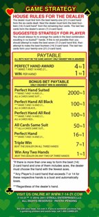 - В случае, если игрок соберет «идеальную комбинацию», то есть ровно 7, 14 и 21 очко, ему автоматически выплачивается выигрыш 4 к 1 по всем трем ставкам, независимо от карт дилера.
