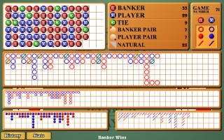Потренируйтесь в игре бесплатно с помощью моей игры в баккару . Она включает в себя полную историю раздач и точные шансы на следующую партию.
