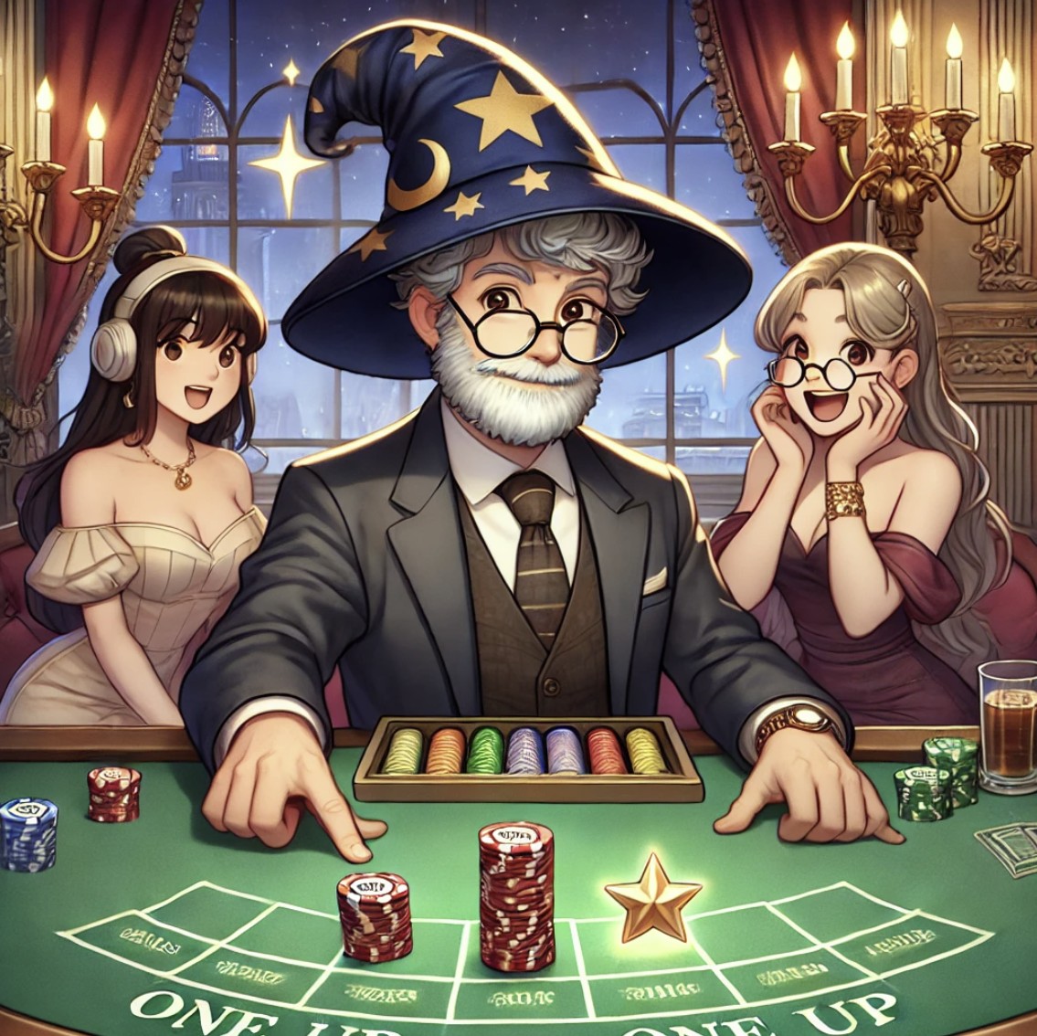 Ставка One Up — это дополнительная ставка, встречающаяся в версиях баккары без комиссии, которая увеличивает ставку на Банкира при выигрыше 7 очков Банкира из 3 карт. Эта разновидность баккары чаще всего известна как EZ Baccarat, но в случае дополнительной ставки One Up игра называется Fortune 7.