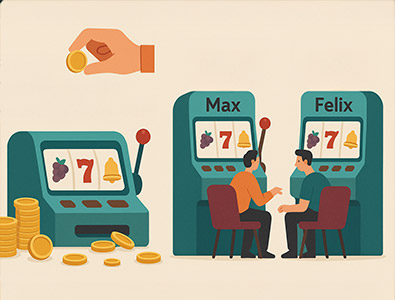 Представьте себе двух друзей, Макса и Феликса, которые в субботний вечер садятся играть в игровые автоматы. Макс выбирает известную игру с RTP 96,8%, а Феликс, не особо вникая в детали, выбирает более яркую игру с RTP всего 92%. Оба делают по 500 вращений, каждое по 1 евро.
