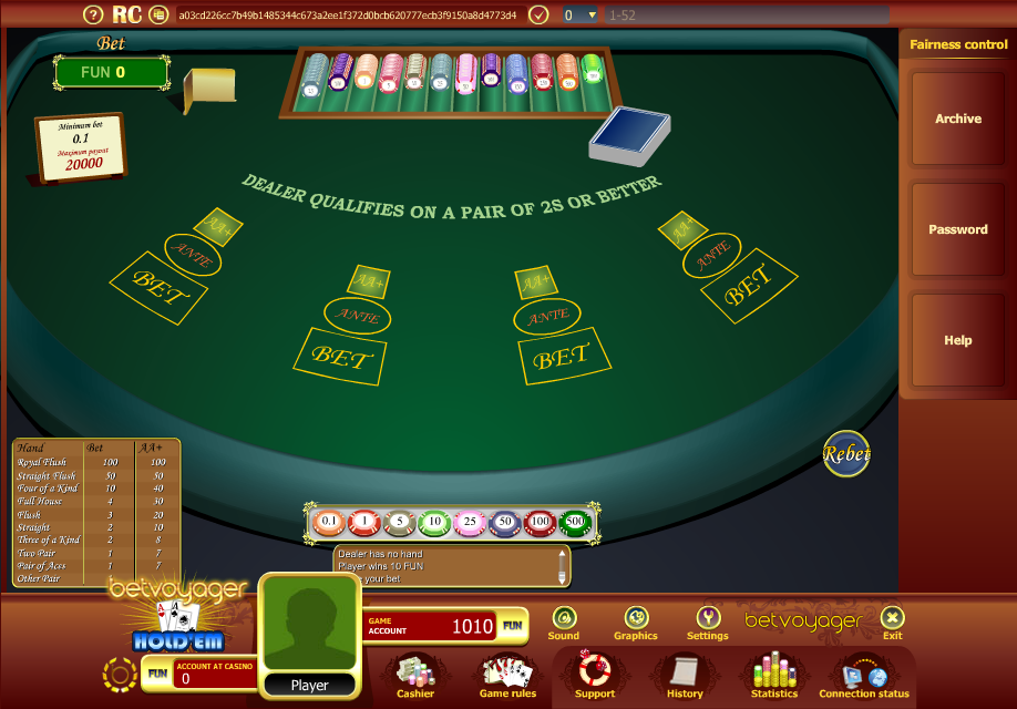 Таблица выплат Bet Voyager Hold 'Em — нулевое преимущество казино.