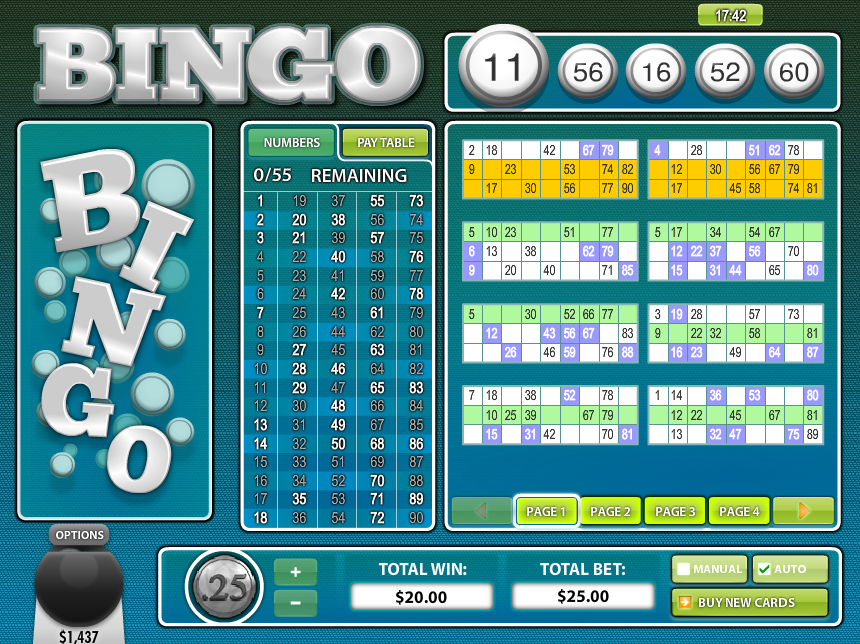 Игрок начинает с выбора количества игровых карт (от 1 до 100), ставки на каждую карту (от 10 центов до 1 доллара) и количества шаров в розыгрыше (35, 45 или 55).