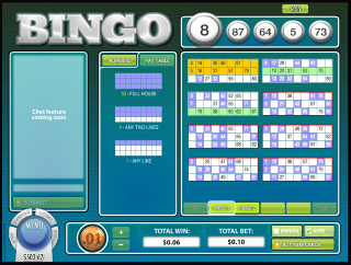 Игра с 75 номерами ведется на карточке размером 5 на 5 с пустым квадратом посередине. Существует семь различных способов выиграть. На каждой карточке выплачивается только наибольший выигрыш. Игрок может выбрать, какие номера будут вытянуты: 35, 45 или 55. Чем меньше шаров выпало, тем больше выигрыш.