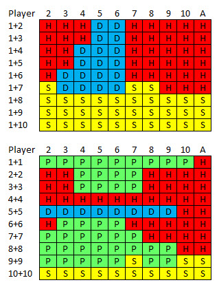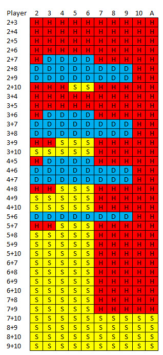 Ниже представлена базовая таблица стратегий для всех мягких итогов и пар.