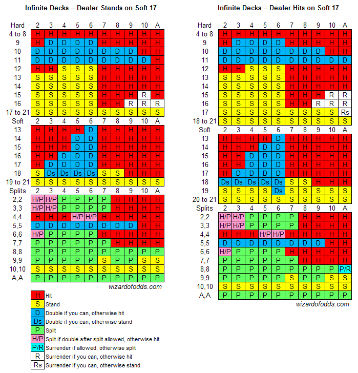 Здесь представлены базовые стратегические таблицы для бесконечных колод.
