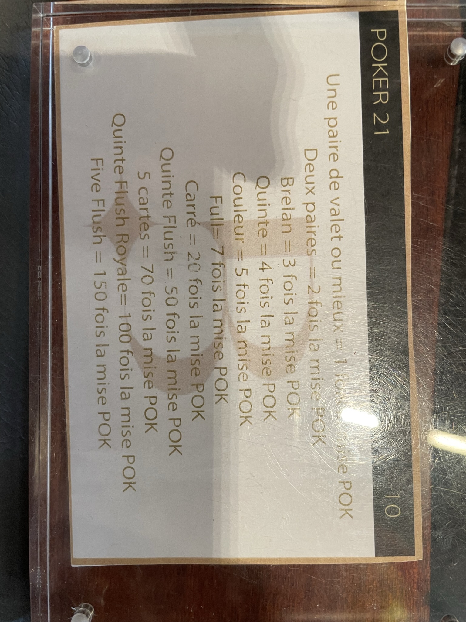 Ставка «Покер 21» — это дополнительная ставка в блэкджеке, которую я заметил в парижском клубе Le Club Barriere 17 сентября 2022 года. Да, в Париже есть небольшие казино, где играют только за столами. Адрес клуба, который я посетил, — Елисейские поля, 104.