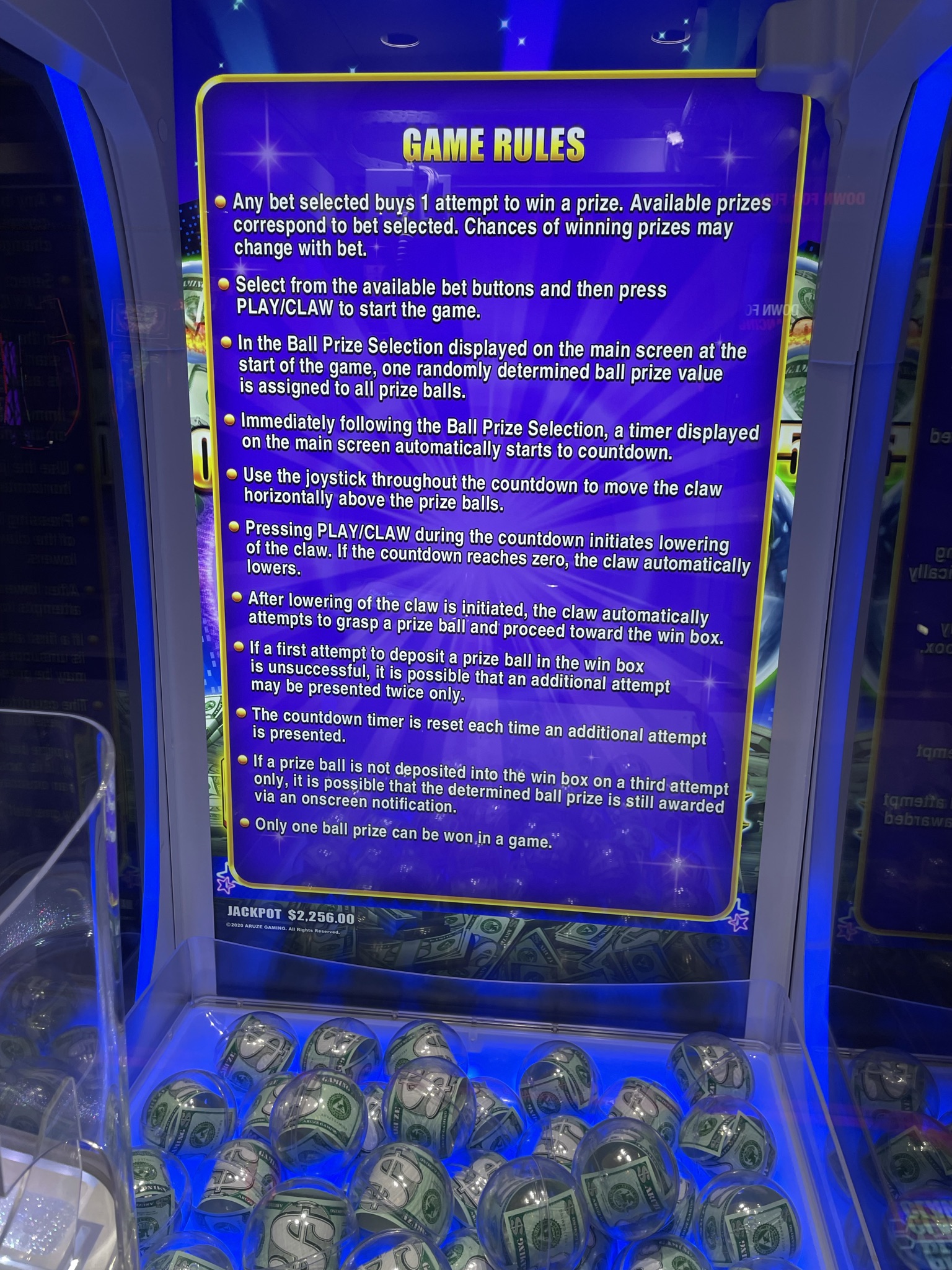 - Согласно правилам, если игроку предначертано выиграть, а клешня случайно выпускает мяч до того, как он достигнет желоба, то игра повторяется до трех раз. Если мяч не достигает желоба и после третьей попытки, приз игрока все равно отображается на экране.