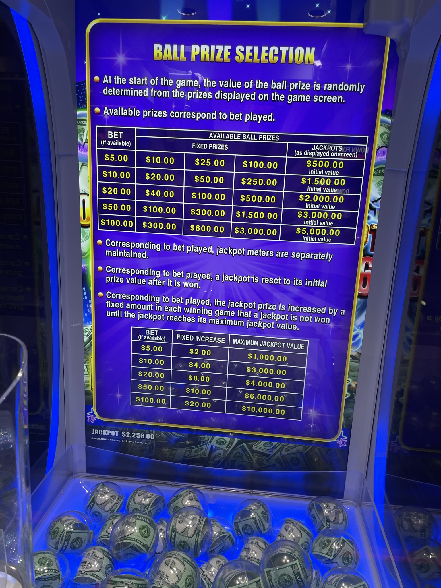 - 20 долларов: 40 долларов, 100 долларов, 500 долларов, джекпот