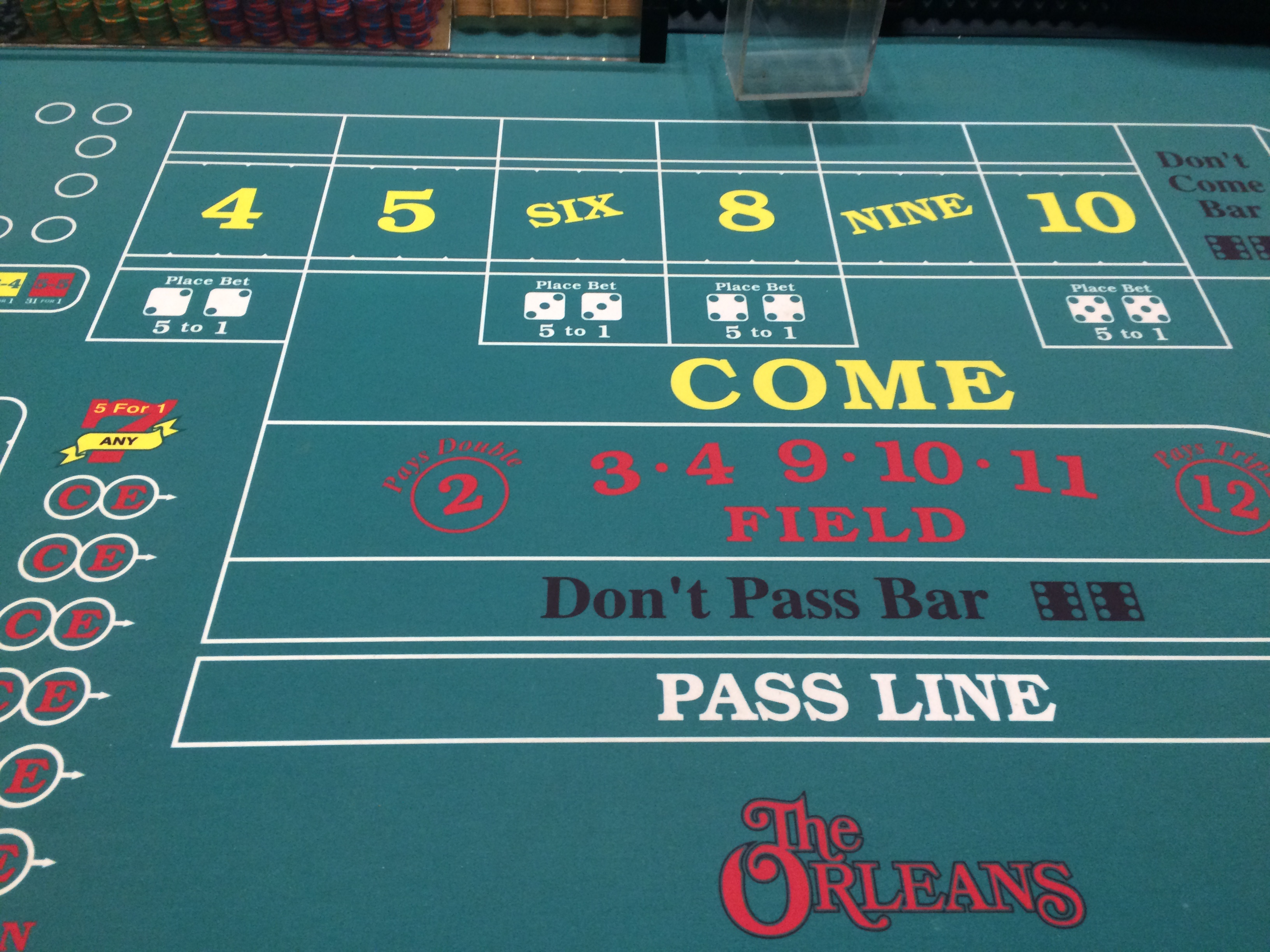 30 мая 2017 года я заметил, что на столах для игры в крэпс в казино Orleans в Лас-Вегасе делались ставки на «сложные варианты». Эти ставки выигрывали, если указанный «сложный вариант», например, 5-5, выпадал до того, как сумма выпадет семь. Каждая ставка выплачивается 5 к 1.