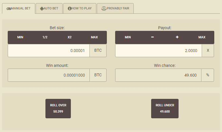 На этой странице речь идёт об игре, известной как «игральные кости», в которую обычно играют в интернет-казино, использующих криптовалюту для ставок и транзакций. Игра не имеет ничего общего с шестигранными игральными костями, а выигрыши и проигрыши определяются случайным числом от 0 до 10 000. Её также не следует путать с другими играми, которые называются просто «игральные кости».