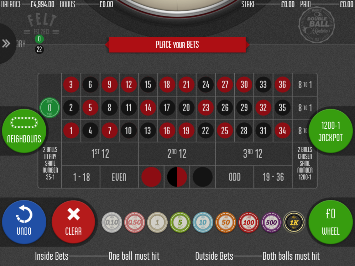 Представляем вашему вниманию несколько скриншотов игры Double Ball Roulette от Felt Gaming с одним зеро. Щелкните по любому изображению, чтобы увеличить его.
