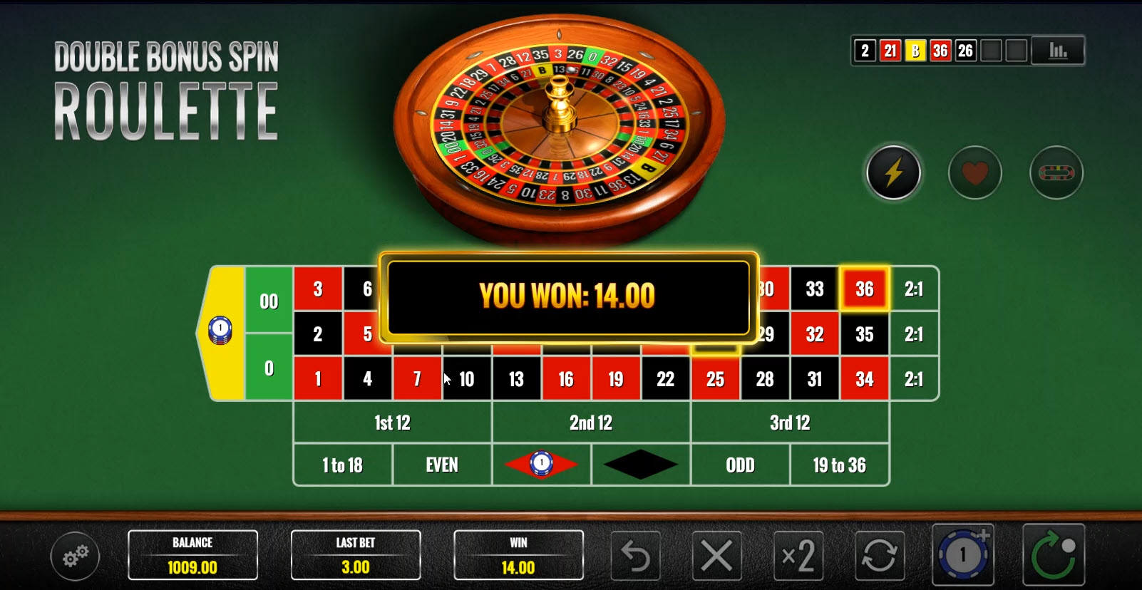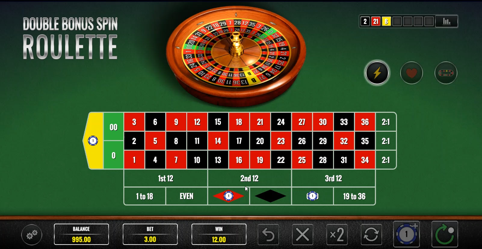Double Bonus Spin Roulette — это разновидность рулетки от IGT. В ней есть бонусное поле на колесе, на которое можно сделать ставку, и которое дает любой другой ставке два шанса на выигрыш. Это бонусное поле на 50% шире всех остальных, что дает ему на 50% больше шансов на выигрыш, чем любому другому полю.