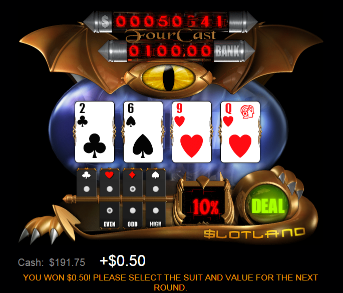 Four Cast — одна из самых необычных азартных игр, которые я когда-либо видел. Обычно я не пишу о действительно странных играх, но в Four Cast играют в интернет-казино Slotland и Win a Day практически с самого начала развития онлайн-гемблинга.