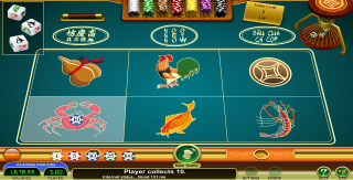 - Используются три игральные кости. На каждой кости изображены следующие символы: рыба, креветка, горихвостка, монета, краб и петух.